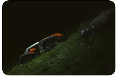 Robotická sekačka bez vodičů s pohonem všech kol na strmé svahy se sklonem až 70 %